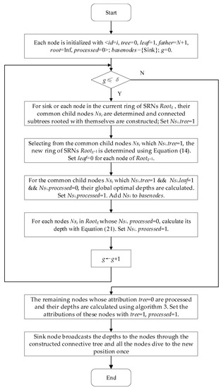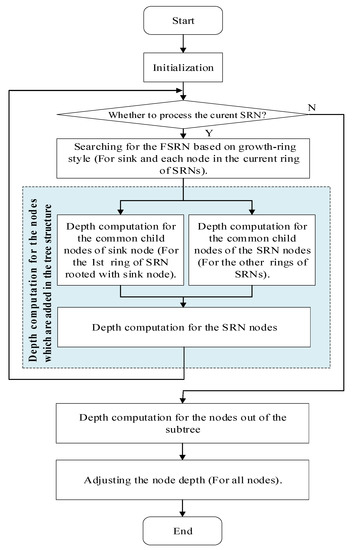 This strategy finally forms a growth ring like network layout. The radius of the growth ring increases with the distance to sink node increasing. The flow chart of the whole strategy is shown in Figure 3.