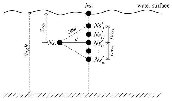The offset distance (OD) between nodes Nsi and Nsj is defined as the possible maximum offset distance between them in the vertical direction when guaranteeing connectivity between Nsi and Nsj. Let OD between Nsi and Nsj be denoted as DivNs(Nsi,Nsj). The relationship between these three distances is shown as Equation (8):