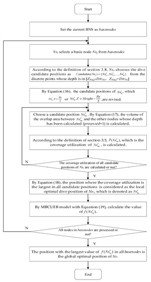 Senel et al. [26,27] proposed a self-deployment scheme named as Depth Computation Approach (CDA). In this approach, the connected paths of network are constructed using a node set called connected dominating set (CDS) to adjust the node depths. The CDS is determined based on a connected backbone constructing. The depths of dominator and non-dominator nodes are then optimized iteratively. This algorithm has relatively good performance on coverage and connectivity. However, this algorithm has poor energy consumption balance performance especially in the situation of sparse node distribution. Moreover, in the process of determining the depth of nodes, CDA can only find the local optimal solution instead of the global optimal solution due to its limitation when considering coverage redundancy; hence the coverage rate of UWSNs can be improved furtherly.