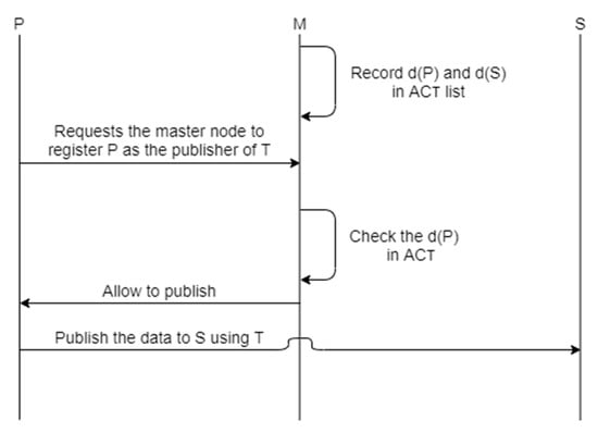 - All publishers and subscribers accessing a specific topic T before ROS operation are listed and recorded in ACT. The information recorded in ACT is d(P) and d(S), which are digests of P and S. The reason for recording the digest is to make it impossible for an attacker to masquerade itself as a node that sees the digest and has authority over T.