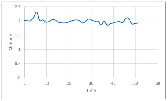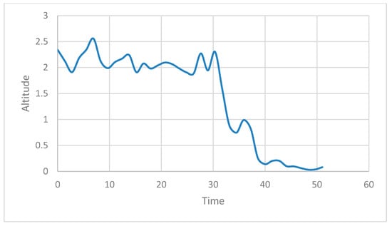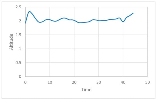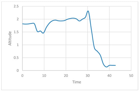 The actual experiment was conducted by flying a normal drone driving at a height of 2 m while considering the drone, property, and human casualties, and by returning the drone to its starting point. Figure 13 shows the state of the UAV during an attack. The X- and Y-axis in Figure 13 denote the time and the altitude of the drone, respectively. It can be seen in the figure that up to the 30 s point, only the accredited node approaches the ROS and transmits the /mavros/local_position/force topic, resulting in a 2 m high UAV flight. After that, the attacker node can then approach the ROS and inject itself into the UAV to fly the drone at an altitude of 0 m to confirm that the altitude of the UAV is slowly converging at 0 m.
