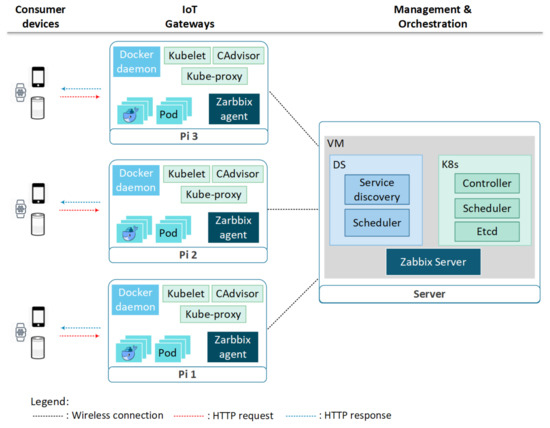 - Fayos-Jordan, R.; Felici-Castell, S.; Segura-Garcia, J.; Lopez-Ballester, J.; Cobos, M. Performance comparison of container orchestration platforms with low cost devices in the fog, assisting Internet of Things applications. J. Netw. Comput. Appl. 2020, 169, 102788. [Google Scholar] [CrossRef]