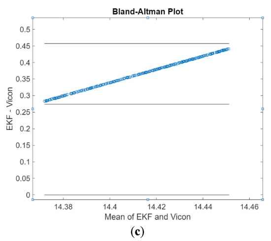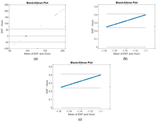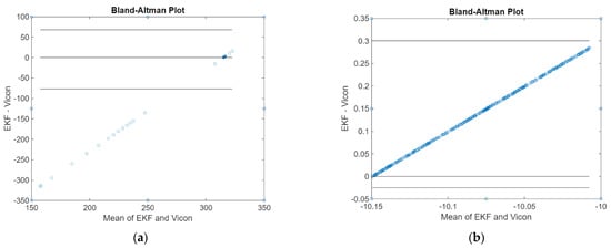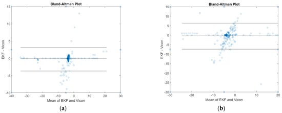 The Bland–Altman plot of pitch and roll angles obtained from the attitude EKF2 presented in