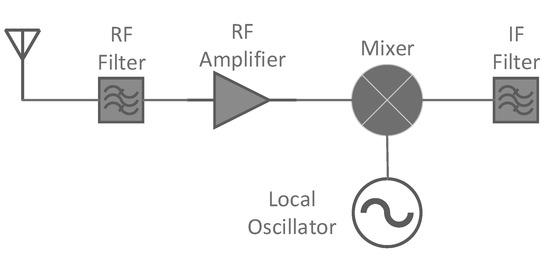 Most of the communications system modules, such as equalizers, filters, mixers or demodulators, are widely used in radiation environments which can be affected by SEUs, as happens with satellite transceivers. One of the most classic examples that can be found in literature is the superheterodyne receiver (Figure 1). The digital signal processing (DSP) units implemented to process the received signals include different algorithms from FIR and infinite impulse response (IIR) filters, to direct digital synthesizers (DDS) obtained with CORDIC units and other modules, such as equalizers, to adjust the gain of the signal in different radio spectrum. All these modules, implemented with analog components in the past, are now designed and integrated in digital devices, first application-specific integrated circuits (ASICs) and now FPGAs. These modern architectures support reconfiguration when a change in the specifications is required. Also, FPGA devices allow a high integration and extensibility on the functionality of the communication modules. For example, new algorithms can be integrated with these devices without the requirement of changing the chips onboard, only by modifying the configuration file, i.e., changing the digital demodulators or the error correction codes applied for the transmissions.