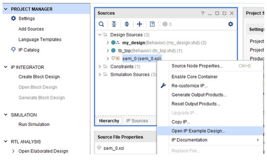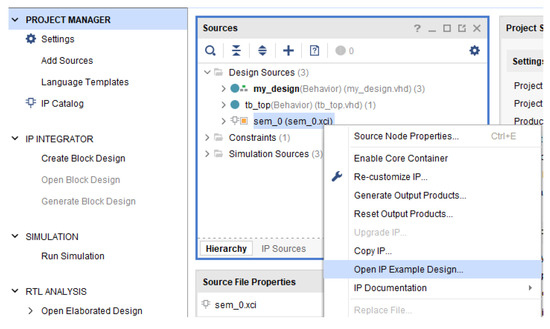 In order to add the SEM IP core to a Vivado project, as it can be seen in Figure 6, it requires to be instantiated from the IP catalog.