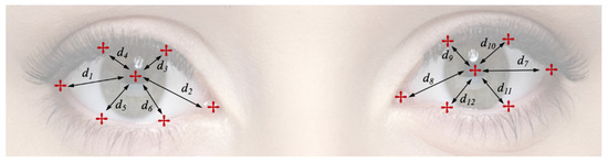 For each image frame, a set of ‘m’ normalised Euclidean distances were calculated between the centre of the pupil and the landmarks on the corresponding eye socket as: