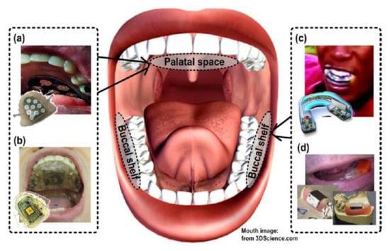 - Park, H.; Ghovanloo, M. An arch-shaped intraoral tongue drive system with built-in tongue-computer interfacing SoC. Sensors 2014, 14, 21565–21587. [Google Scholar] [CrossRef]
