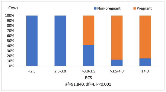 Relation of BCS score with pregnancy status of cows. BCS—body condition score.