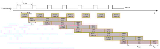Now, the conditions of real-time 2-D CZT beamforming in master-slave multi-core DSP pipeline architecture are further analyzed. Figure 19 shows the timing sequence of accessing memory in that architecture. The precondition of using this architecture is that any two cores are prohibited to access the DDR3 or use SRIO controller at the same time.