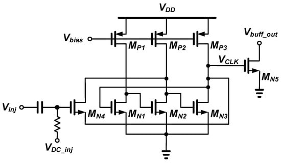 - Ali, R.H.; Hossein, M.N. Generalized analytical equations for injected ring oscillator with RC-load. IEEE Trans. Circuits Syst. I Regul. Pap. 2018, 65, 223–234. [Google Scholar] [CrossRef]