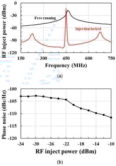 - Behzad, R. A study of injection locking and pulling in oscillator. IEEE J. Solid-State Circuits 2004, 39, 1415–1424. [Google Scholar] [CrossRef]