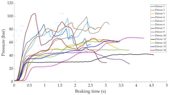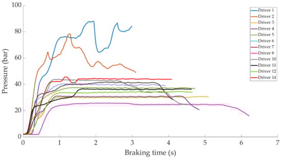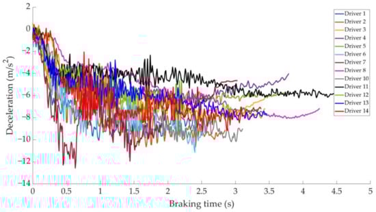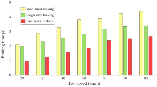 The braking time was enveloped between the time when the driver presses the brake pedal until the vehicle stops (speed is equal to 0 km/h).
