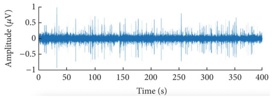 The dataset contains small ship, big ship, and ferry. The data are sampled at anchorage ground, and the frequency is 48,000 Hz. In the experiment, 80% of samples of each class are used as a training set, while the remaining 20% of samples are used as a testing set. Figure 5 shows a frequency domain diagram of underwater noise. Figure 6 shows a time domain diagram of underwater noise.