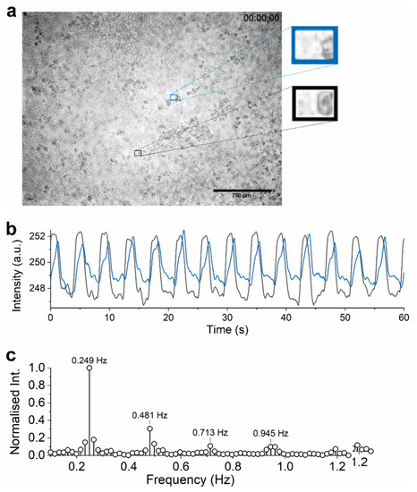 - Huebsch, N.; Loskill, P.; Mandegar, M.A.; Marks, N.C.; Sheehan, A.S.; Ma, Z.; Mathur, A.; Nguyen, T.N.; Yoo, J.C.; Judge, L.M.; et al. Automated Video-Based Analysis of Contractility and Calcium Flux in Human-Induced Pluripotent Stem Cell-Derived Cardiomyocytes Cultured over Different Spatial Scales. Tissue Eng. Part C Methods 2015, 21, 467–479. [Google Scholar] [CrossRef]