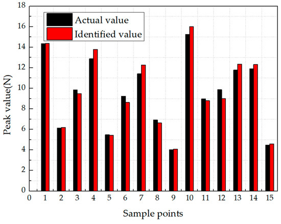 In the identification of peak values, even if the same neural network was used, the MSE of the model can be effectively reduced from 3.23 to 1.12 by using ensemble learning. It can be seen from the Figure 13 that in most cases, the identified value was close to the actual value, and the accuracy of identification within 1N reaches 95.43%.