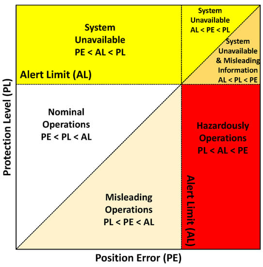 - Oliveira, J.; Tiberius, C. Quality Control in SBAS: Protection Levels and Reliability Levels. J. Navig. 2009, 62, 509–522. [Google Scholar] [CrossRef]