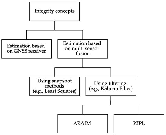 - Zabalegui, P.; De Miguel, G.; Perez, A.; Mendizabal, J.; Goya, J.; Adin, I. A Review of the Evolution of the Integrity Methods Applied in GNSS. IEEE Access 2020, 8, 45813–45824. [Google Scholar] [CrossRef]