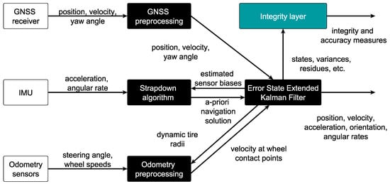 - Gottschalg, G.; Becker, M.; Leinen, S. Integrity Concept for Sensor Fusion Algorithms used in a Prototype Vehicle for Automated Driving. In Proceedings of the 2020 European Navigation Conference (ENC), Dresden, Germany, 23–24 November 2020. [Google Scholar] [CrossRef]