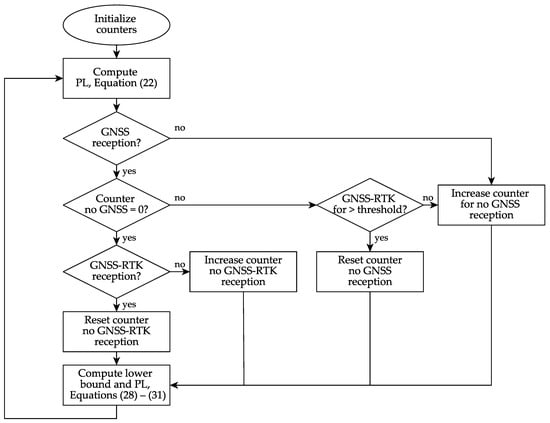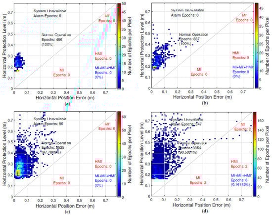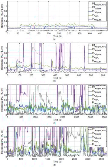 - Madrid, P.F.N.; Saenz, M.A.; Varo, C.M.; Schortmann, J.C. Computing Meaningful Integrity Bounds of a Low-cost Kalman-filtered Navigation Solution in Urban Environments. In Proceedings of the 28th International Technical Meeting of the Satellite Division of The Institute of Navigation (ION GNSS+ 2015), Tampa, FL, USA, 14–18 September 2015; pp. 2914–2925. [Google Scholar]