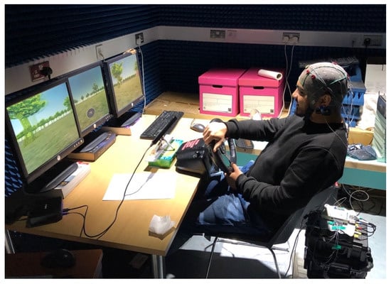 In addition to using an eye tracker, electroencephalography (EEG) and, more recently, event-related potential (ERP) have been used in the detection of driver distraction. EEG is a non-invasive device that uses a computer to record the small electrical activity of the brain through electrodes placed on the scalp. The EEG signal has the ability to probe driver behaviour in response to workload [,] and driver fatigue [,]. ERP technique measures brain response that is the direct result of a specific sensory, cognitive or motor event. It is comprised of several temporally separated underlying components. Every component is associated with several brain functions or the timing of information processing []. In driver distraction research, the use of ERP is usually used to measure the amplitude and latency of one or several components of the EEG signal. For example, a study uses of negative slow wave (NSW), the most negative-going ERP in the range 430–995 ms at electrodes Fz and Cz, to assess the allocation of neural resources under single and dual-task conditions []. The study found a reduced NSW amplitude in dual-task compared to single-task conditions and suggested driver shifted cognitive resources from the primary driving task to processing the distracting stimuli. In another study comparing P300 amplitudes in relation to difficulty in the act of driving, it was found that increases in difficulty were related to decreases in the P300 amplitude [].