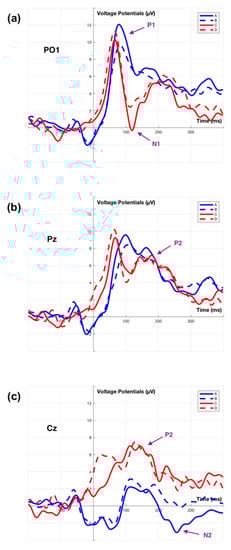 - Vogel, E.K.; Luck, S.J. The visual N1 component as an index of a discrimination process. Psychophysiology 2000, 37, 190–203. [Google Scholar] [CrossRef]
