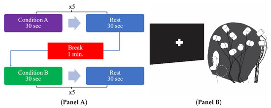 - Huppert, T.J.; Diamond, S.G.; Franceschini, M.A.; Boas, D.A. HomER: A review of time-series analysis methods for near-infrared spectroscopy of the brain. Appl. Opt. 2009, 48, D280–D298. [Google Scholar] [CrossRef] [PubMed]