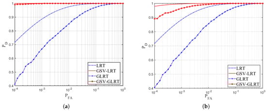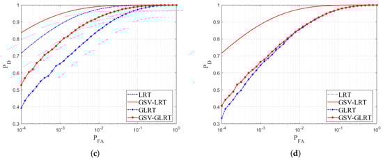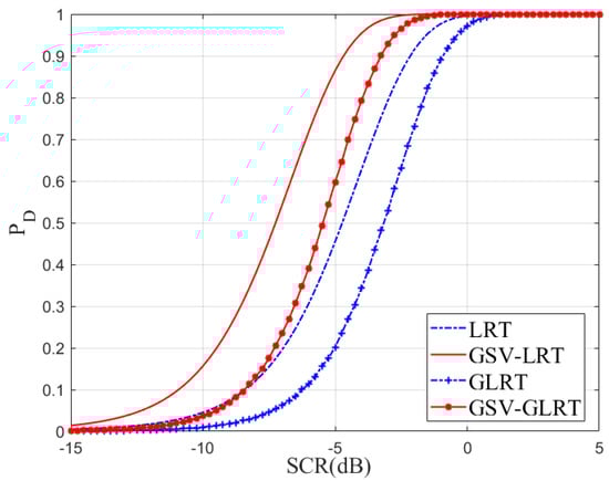Since GSV-LRT is optimal in the Neyman–Pearson criterion, Equation (28) can be used as a reference for assessing the performance of GSV-GLRT.