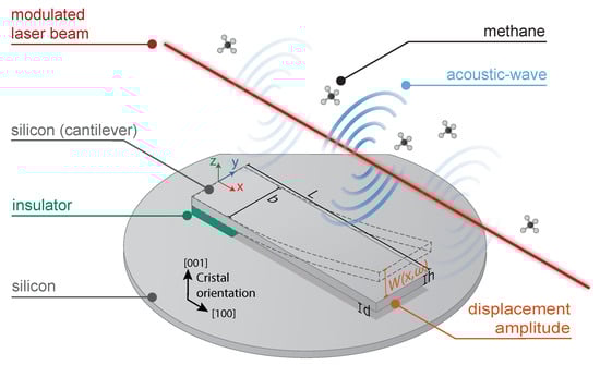 - Adamson, B.D.; Sader, J.E.; Bieske, E.J. Photoacoustic detection of gases using microcantilevers. J. Appl. Phys. 2009, 106, 114510. [Google Scholar] [CrossRef]