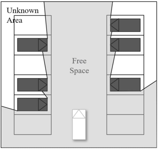 22] formalized the potential risk due to occlusions and limited sensor capability by over-approximating all possible states of unobservable obstacles using state intervals. However, these approaches cannot be applied to valet parking scenarios. Since these algorithms assume that the obstacles pop out according to the topology of the road map, they cannot cautiously assess the spaces between parked vehicles.