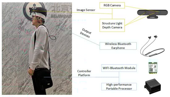 13] proposed a method of using RGB-D cameras and some other equipment to realize real-time navigation without the need to establish a priori map through the SLAM scheme. According to their description, the program can achieve a processing speed of 28.6 Hz. However, this solution requires visually impaired people to interact with a handheld smart device, especially when setting a destination, which may bring potential inconvenience to the user. Zhang et al. [
