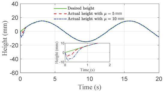 - The proposed ride height controller can guarantee the accurate trajectory tracking performance in the presence of time-varying disturbances.