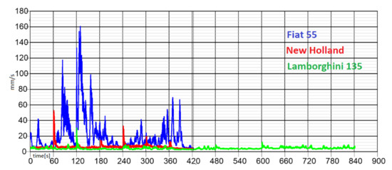 - Cutini, M.; Brambilla, M.; Bisaglia, C. Whole-body vibration in farming: Background document for creating a simplified procedure to determine agricultural tractor vibration comfort. Agriculture 2017, 7, 84. [Google Scholar] [CrossRef]