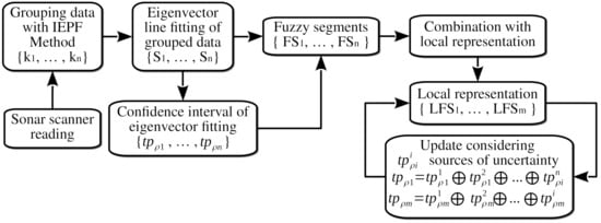 Flowchart of the procedure for building the fuzzy segment representation surrounding the underwater vehicle.