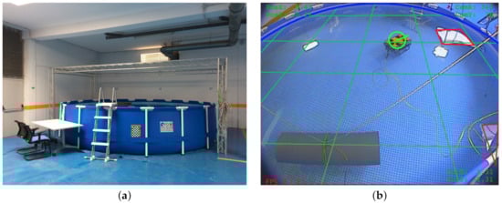 (a) Structured swimming pool scenario and (b) ground-truth estimation system.