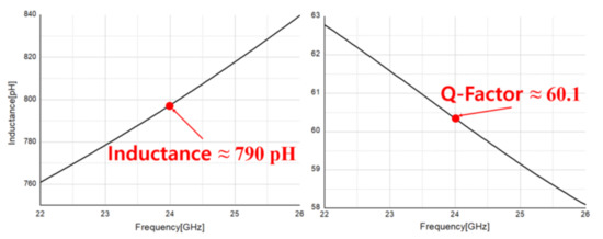 At this time, the gate bias voltages of DA and PA having the same circuit configuration but different bias are designed to 480 mV and 650 mV, respectively. In Table 3, design parameters for transmitter are summarized using the design philosophy introduced in Section 3.1.
