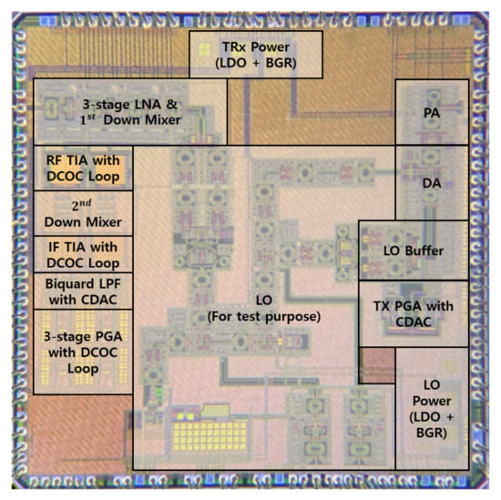 - Kim, Y.; Han, J.; Lee, J.S.; Jin, T.; Jang, P.; Shin, H.; Lee, J.; Cho, T.B. Power-Efficient CMOS Cellular RF Receivers for Carrier Aggregation According to RF Front-End Configuration. IEEE Trans. Microw. Theory Tech. 2020, 69, 452–468. [Google Scholar] [CrossRef]