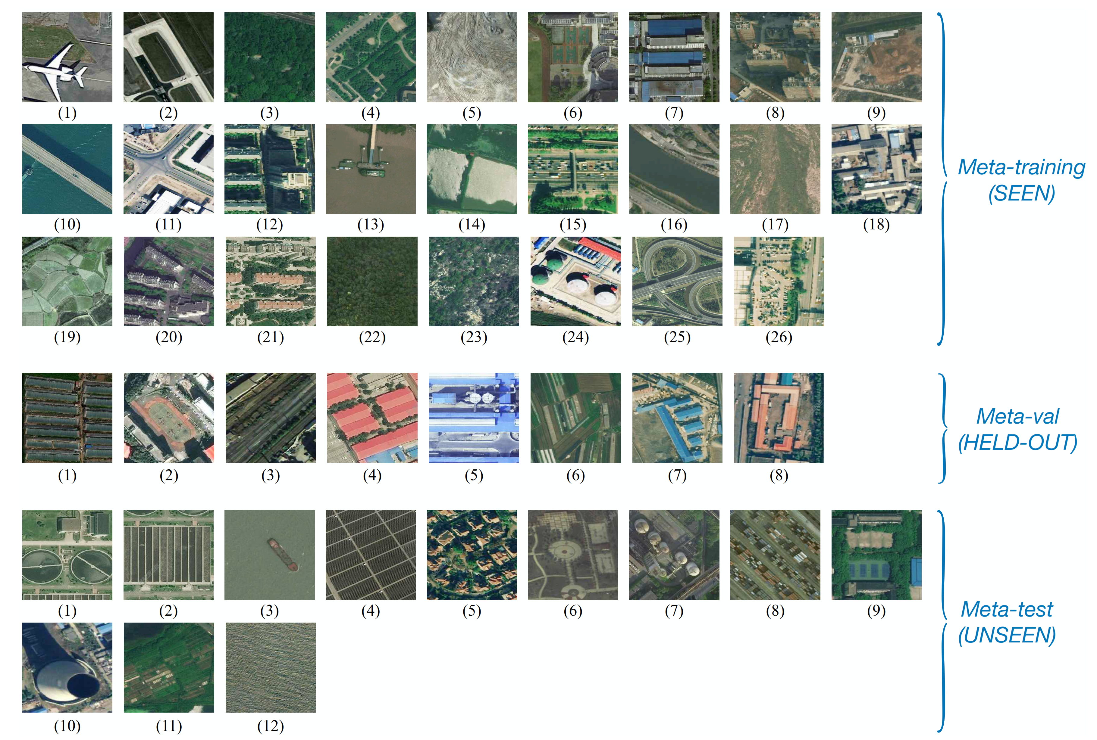 | Method | Backbone | Meta Training Tasks | NWPU-RESISC45 | RSD46-WHU | ||