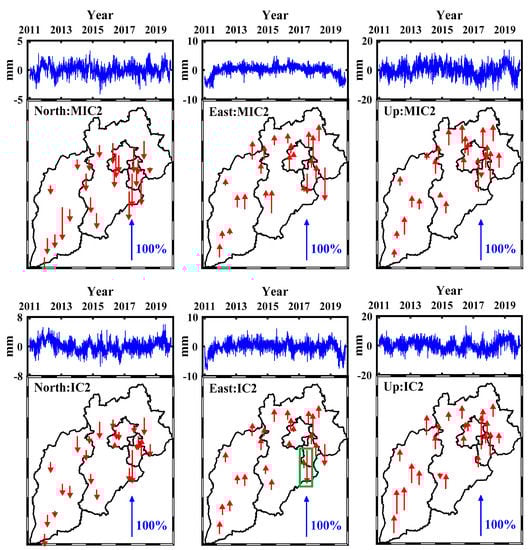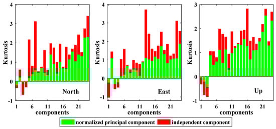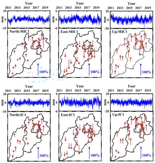 - Liu, B.; Dai, W.; Peng, W.; Meng, X. Spatiotemporal analysis of GPS time series in vertical direction using independent component analysis. Earth Planets Space 2015, 67, 189. [Google Scholar] [CrossRef]
