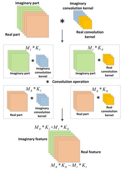 Figure 3 shows a schematic diagram of the complex-valued convolution operation. The real and imaginary convolutions of the complex-valued signal are expressed as follows: