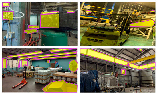 To prepare images for the experiment, we collected around 2000 images of energy-saving opportunities from several real facilities during the field industrial energy assessments. Then, certified practitioners screened these images and selected 40 images with 96 areas of interest (AOIs) as potential energy-saving opportunities. AOIs could be located in one of the following categories: production (furnace, oven, boiler, pump, chiller, cooling tower, motor system, air compressor), building and HVAC (building envelope insulation, lighting, HVAC system, skylight, occupancy sensor, thermostat), and recycling and waste management (recycling baler, recyclable material, anaerobic digestion of wastewater sludge). As shown in Figure 2, AOIs within each image have been manually predefined by the industrial energy assessment experts to capture the attention of each AOI, in Figure 2, each highlighted area is an individual AOI for data collection.