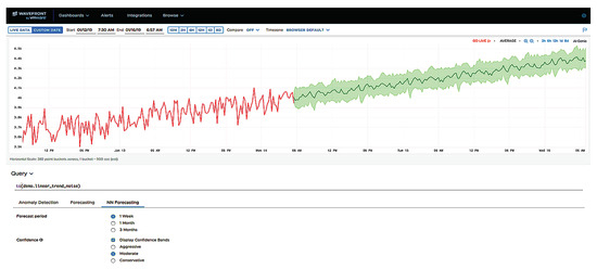 Time series collection and analysis is of great importance for various reasons like anomaly detection, anomaly prediction, correlations and capacity planning [11,12,13,14,15]. The administrators of cloud environments require automated forecasts of the future metric-data values for the prediction of the future states of application or infrastructure components. The capacity planning requires trend analysis for resource consumption to predict additional needed processor bandwidth or mass-storage capacity in order to prevent delays and failures. Time series data can also be used for correlation analysis and as the source of anomaly events for further root cause analysis.