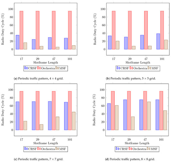 Results for the Radio Duty Cycle (RDC) with a periodic traffic pattern.