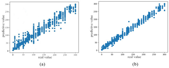 Comparison diagram of fitting algorithm. (a) Prediction result before stacking parameter optimization. (b) Prediction result after stacking parameter optimization.