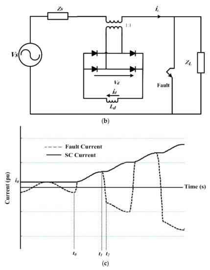 - A superconducting coil (SC) is connected to the DC side of the bridge rectifier circuit as limiting impedance [38,39,40,41].