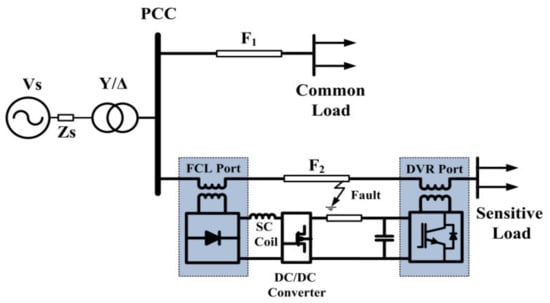 Therefore, researchers are studying techniques to suppress the fault current and reduce the voltage sag under fault condition [8,9,10]. It is generally less costly to tackle the problem at its lowest level, i.e., close to the load. In [11], a dual-function dynamic voltage restorer (DVR) is proposed to mitigate voltage sag and fault current level in distribution system. To achieve this capability, the flux-charge feedback-based control system is implemented to the DVR, which acts as large inductance to limit downstream fault currents. In [12], a dual-functional bridge-type fault current limiter (BTFCL) is presented and designed, which can operate in both current limiting modes to reduce faulty currents and DVR mode to compensate the voltage sag in distribution system. In [13], a new FCL-DVR scheme is proposed, which can operate with different protection strategies under grid disturbances. It includes a crowbar bidirectional-thyristor switch, which is located in the output of DVR to limit the fault currents. All design considerations of the FCL-DVR parameters including power rating of DVR converter, output filter reactors and the DC link capacitor are presented. In [14], a novel FCL-DVR concept is proposed, which both capabilities of limiting fault current and compensating the PCC voltage. The main advantage of proposed FCL-DVR concept is its reduced number of components compared to the other FCL-DVR schemes. In [15], an improved FCL-DVR scheme with energy-optimized control strategy is proposed, which has both capabilities of other FCL-DVR schemes with the capacity optimization of its key components.