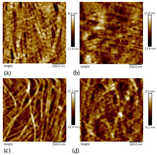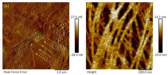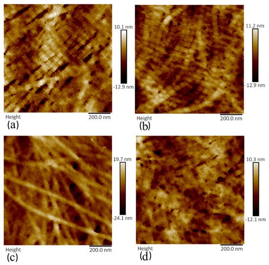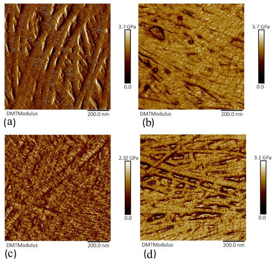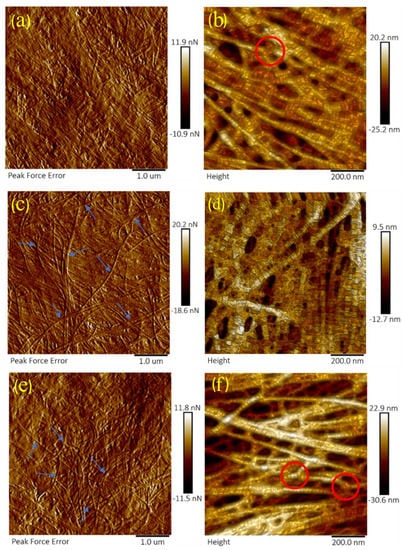 - Pittenger, B.; Erina, N.; Su, C. Quantitative Mechanical Property Mapping at the Nanoscale with Peak Force QNM; Application Note Veeco Instruments Inc., 2010; pp. 1–12. Available online: https://www.bruker.com/fileadmin/user_upload/8-PDF-Docs/SurfaceAnalysis/AFM/ApplicationNotes/AN128-RevB0Quantitative_Mechanical_Property_Mapping_at_the_Nanoscale_with_PeakForceQNM-AppNote.pdf (accessed on 12 January 2020).