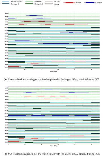 Figure 12. Illustrative example of the feasible MA-level plan with the largest OFrew obtained by PC1 for the second scenario (SC2).
