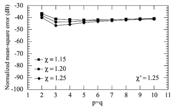 q = 8. Since such a threshold is obtained at the cost of a lower number of NF samples in the former case, the corresponding combination of parameters is adopted in the following. Note that such a choice assures a maximum reconstruction error of about −60 dB. For the sake of comparison,