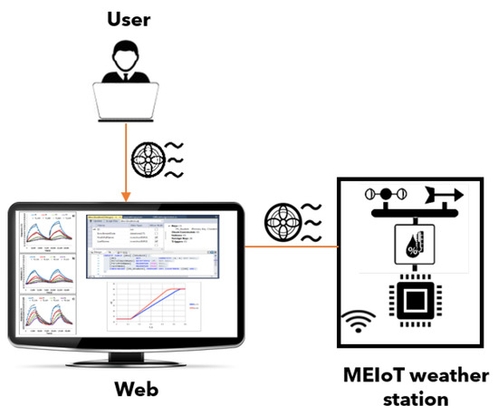 Each of the users (educator or participant) has an independent connection within the system that allows queries or modifications to the MEIoT weather station; the process that describes the connection and the visualization of the data is shown in Figure 11.