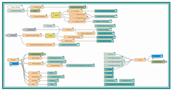 Figure 5. Node-Red based application. - Applications Layer: For data visualization and exogenous disturbance input manipulation, a web application based on Node-RED was created.This application allows interaction with the MEIoT weather station and its exogenous disturbance input from a mobile device, computer, or the web. Section 3.4 explains it in more detail.